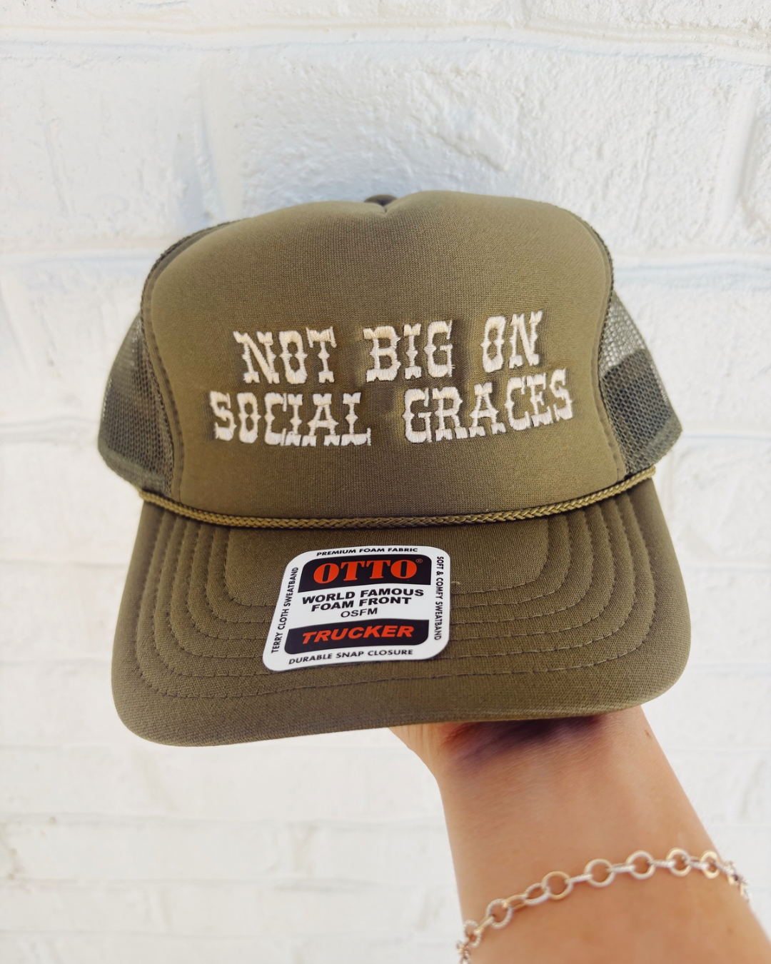 Not Big On Social Graces Trucker - Olive